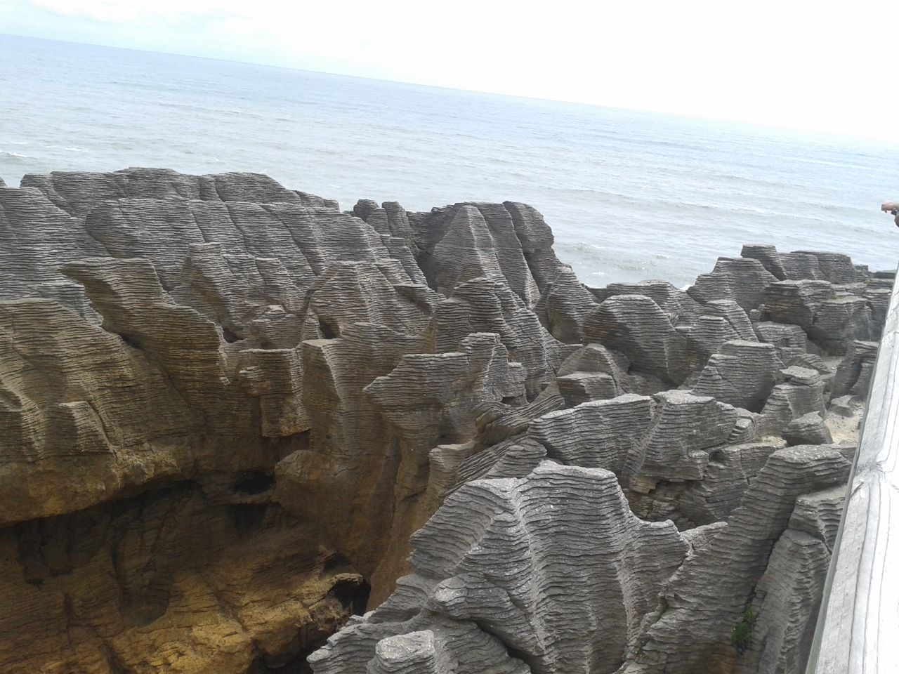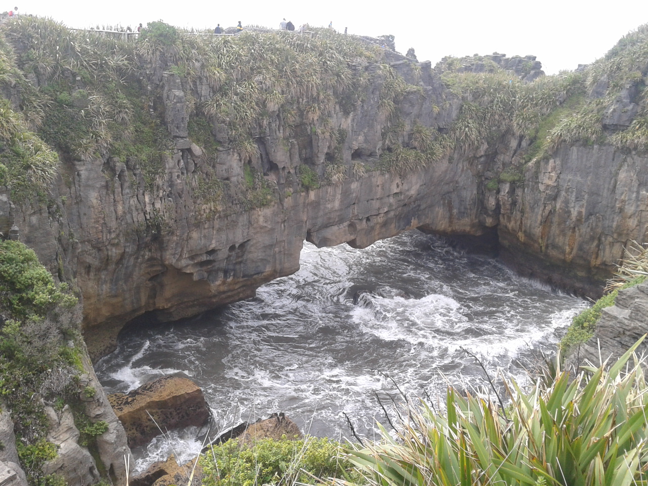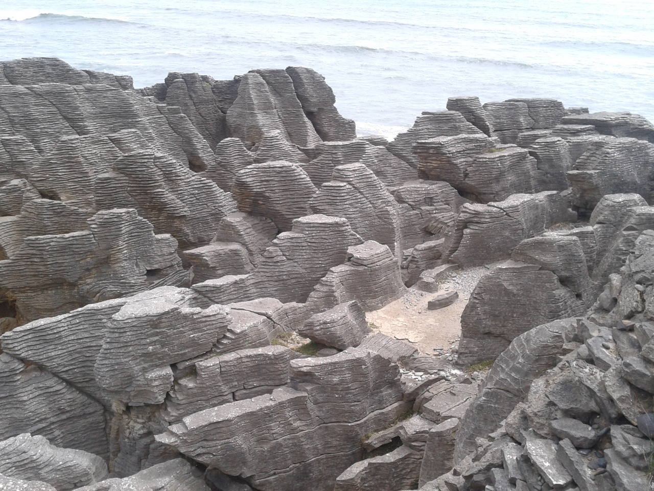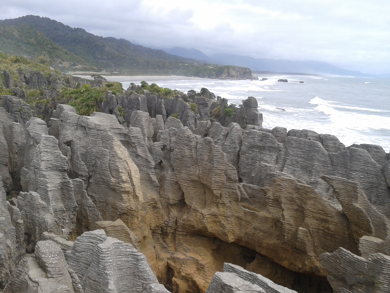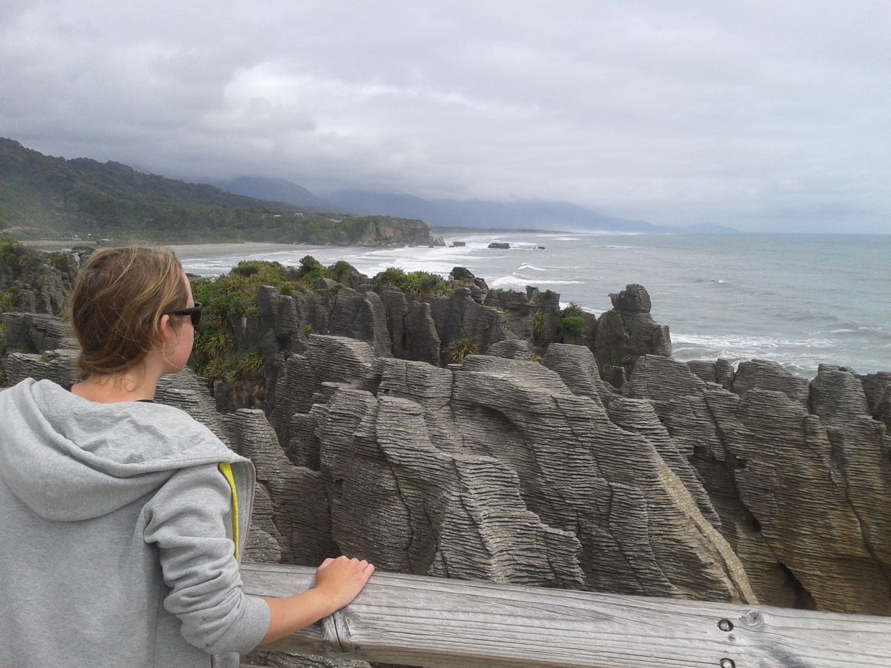 Und dann kam das Highlight des Tages. Die Pancake Rocks bei Punakaiki. Die Wissenschaftler sind sich noch uneins, wie genau diese Felsformationen entstanden sind, die erinnern aber sehr eindeutig an Stapel von leckeren Pfannkuchen. Hat uns das eine Lust auf Pancakes gemacht, das war regelrecht gemein! Danach erkundeten wir auch noch eine Höhle, ein kleiner Geheimtipp keine 2 Gehminuten von den Pancake Rocks entfernt. Mit Taschenlampe bewaffnet stürzten wir uns ins Dunkel und wurden mit einer echt beeindruckenden Höhle belohnt.