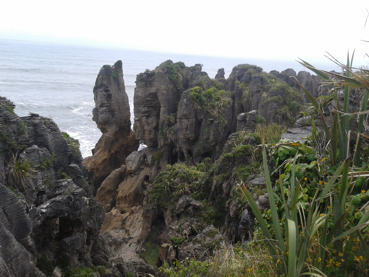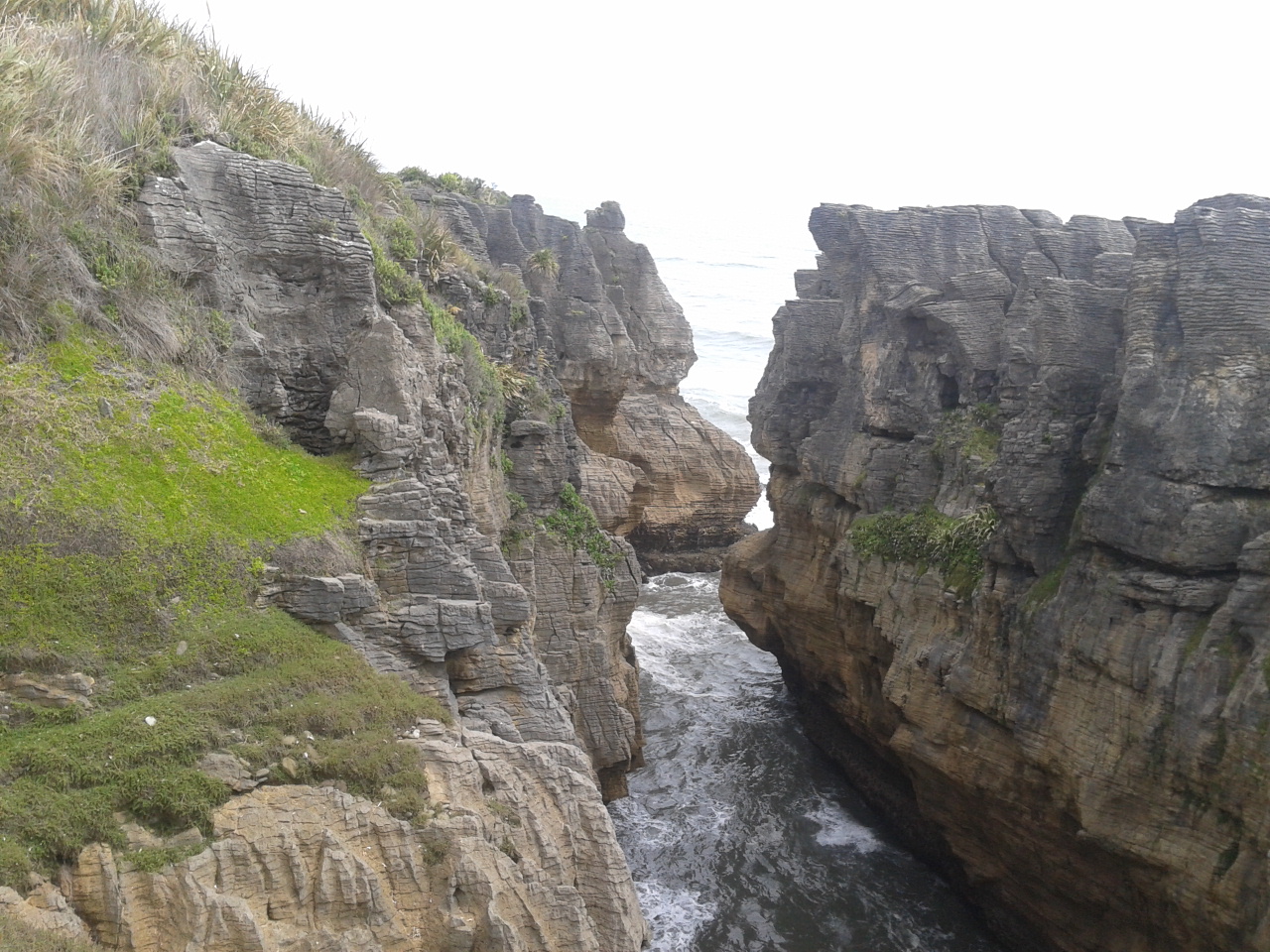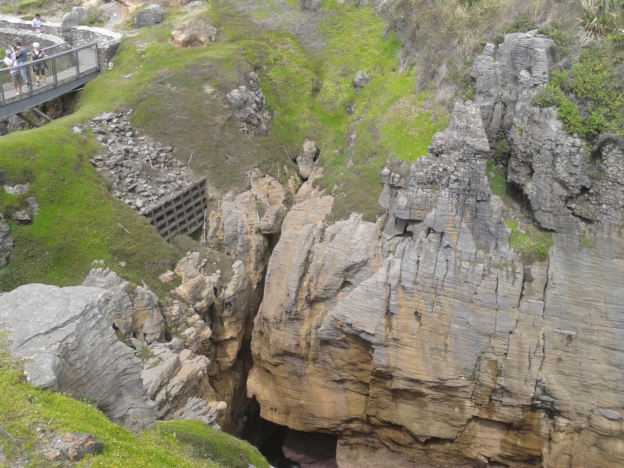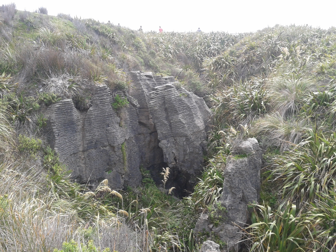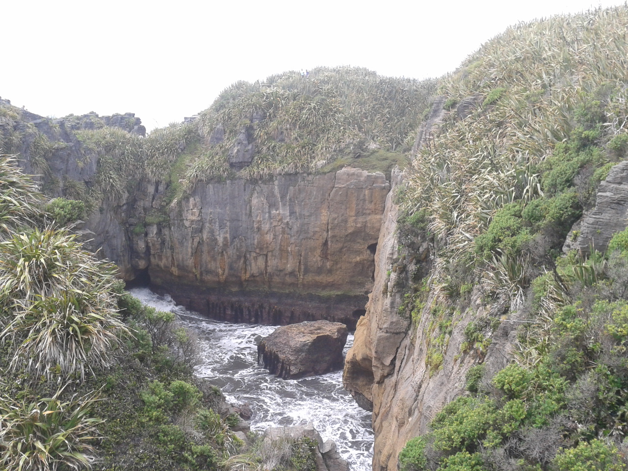 Und dann kam das Highlight des Tages. Die Pancake Rocks bei Punakaiki. Die Wissenschaftler sind sich noch uneins, wie genau diese Felsformationen entstanden sind, die erinnern aber sehr eindeutig an Stapel von leckeren Pfannkuchen. Hat uns das eine Lust auf Pancakes gemacht, das war regelrecht gemein! Danach erkundeten wir auch noch eine Höhle, ein kleiner Geheimtipp keine 2 Gehminuten von den Pancake Rocks entfernt. Mit Taschenlampe bewaffnet stürzten wir uns ins Dunkel und wurden mit einer echt beeindruckenden Höhle belohnt.