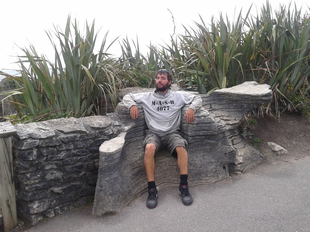 Der nächste Morgen war zwar sehr schön, aber die Bewohner des Campingplatzes wachten leider auch zeitig mit uns auf. Daher beschlossen wir das Frühstück zu verschieben. Der neue Plan war, bis nach Westport zu kommen. Dies ist noch eine der größeren Städe an der Westküste, weswegen wir uns dort im Burgerking eine heiße Schokolade (für 1 NZD das Stück) für jeden holen und mit diesem köstlichen Heißgetränk dann unser Frühstück genießen wollten. Doch wir haben die Städte der Westküste gnadenlos überschätzt. Kein Burgerking, kein Mc Donalds, keine der Fastfoodketten, die normalerweise von zivilisierter Besiedlung zeugen (wie auch immer man dazu stehen will) war hie zu finden. Dank des kostenlosen Internets, welches die Supermarktkette New World mittlerweilse anbietet fanden wir heraus, dass bis Queenstown nur noch ein Mc Donalds zu finden sein würde. Unsere Abhängigkeit von Fast Food Lokalen mag an dieser Stelle etwas befremdlich wirken, aber neben der spottbilligen heißen Schokolade bietet Burgerking auch kostenloses Wifi an. Und Mc Donalds, bzw. Mc Cafe tun dies auch. Somit sind diese Ketten für uns ein wichtiges Stück Verbindung zur Heimat. Das Frühstück war dann aber auch ohne Kakao lecker und danach machten wir uns auf um eine Robbenkolonie zu sehen. Mit den faul in der Sonne liegenden Dickhäutern konnte Heiko sich sofort identifizieren, außerdem konnten wir auch ein paar kleine Robbenbabies erspähen!