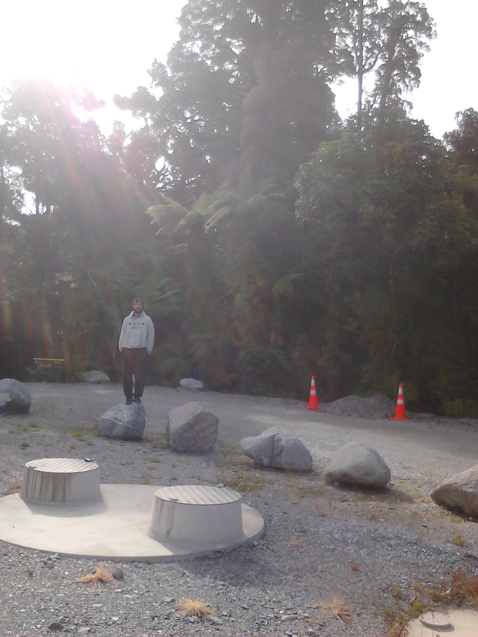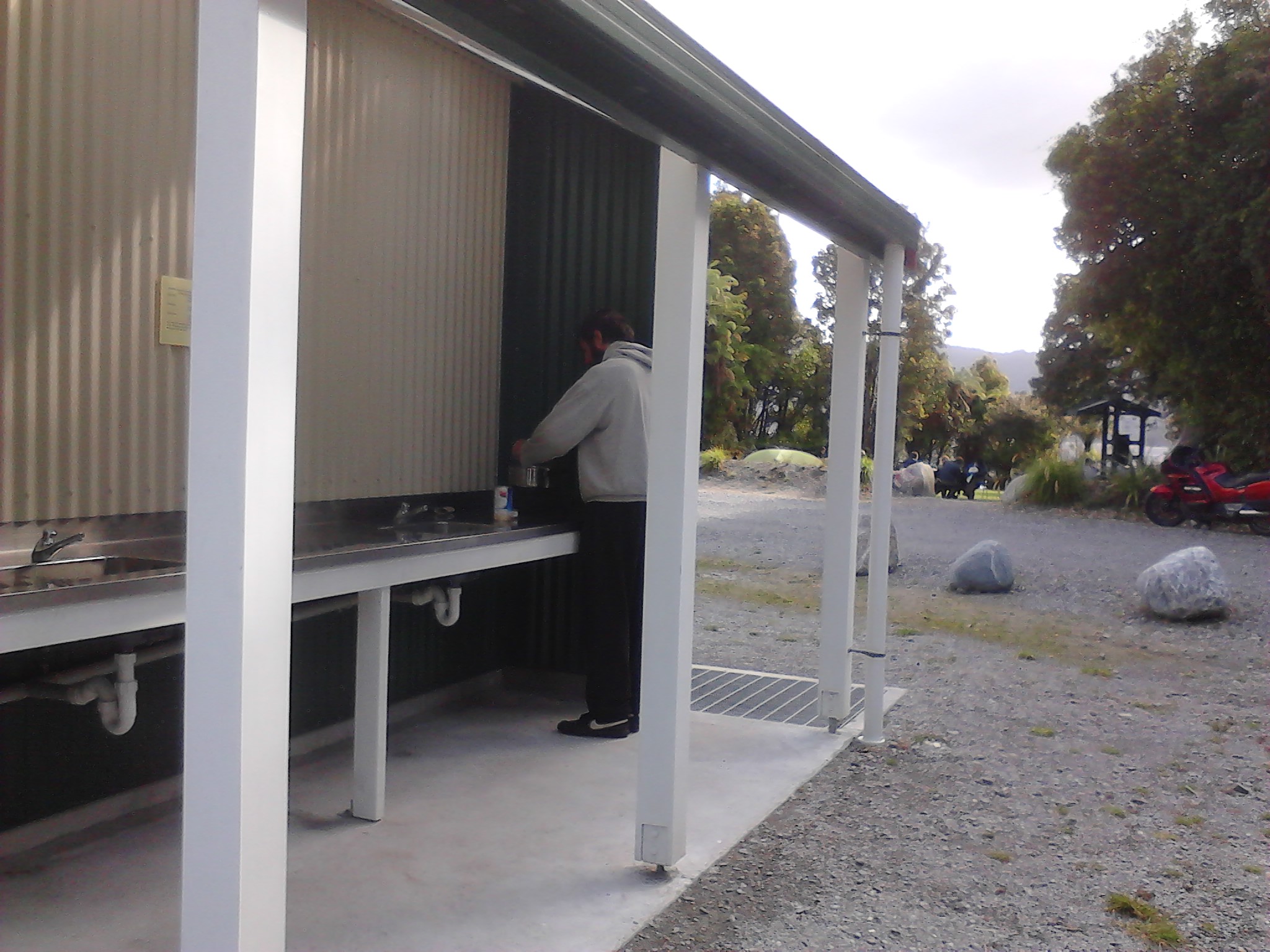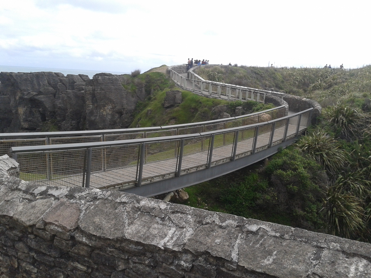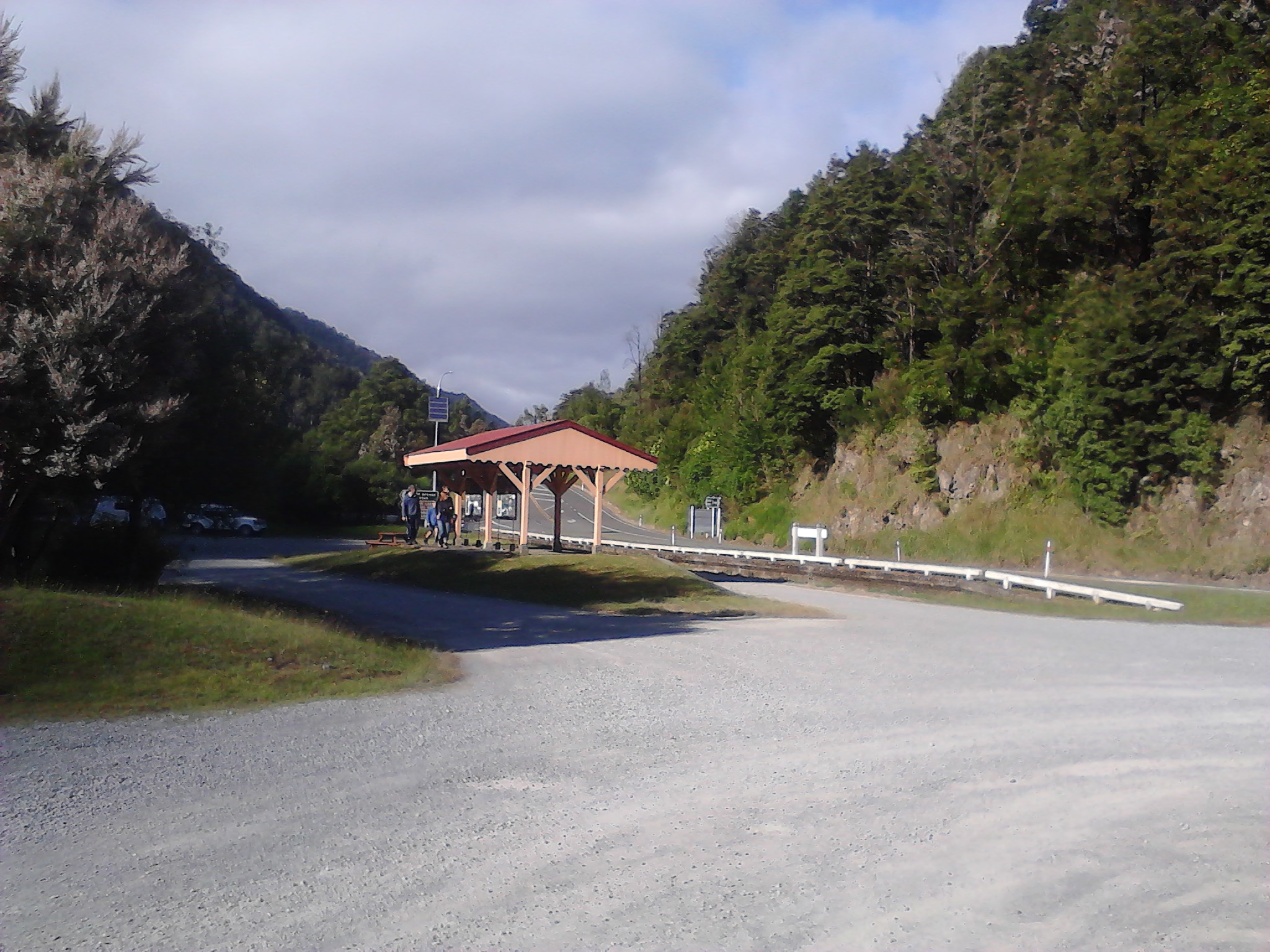 Dann ging es weiter bis nach Greymouth. Hier schlugen wir in einem für den Preis richtig exklusiven Holiday Park unser Lager auf. Hier gab es nämlich 50 MB kostenloses Internet und dazu konnten wir das Spa-Bad kostenlos benutzen. Nach den Torturen des Tages ließen wir uns das natürlich nicht nehmen und kochten uns dann zum Abendessen noch Reis mit einer richtig geilen Kürbis-Kokossahnesoße. So konnten wir am nächsten Tag richtig gut gestärkt aufbrechen. Bei Greymouth gibt es nämlich ein sogenanntes “Shantytown”, eine restaurierte alte Goldgräberstadt. Das klang richtig klasse, aber als wir ankamen und den Eintrittspreis sahen kippten wir fast aus den Latschen. 31,50 NZD pro Person sollte das kosten. Da schluckten wir ziemlich und strichen im Endeffekt diesen Punkt von unserer Liste. Mal zum vergleich, in Holidayparks können wir zusammen für zwischen 30 und 36 NZD schlafen. Im Schnitt verbrauchen wir pro Tag etwa 45 NZD. Heißt – für vielleicht eine Dreiviertelstunde durch ein restauriertes Dorf spazieren hätten wir 1 1/2 Tagesbudgets zahlen müssen! Also fuhren wir weiter und sahen am Straßenrand ein verheißungsvolles Schild. “Treetop Walk” nannte sich das. Wohl quasi eine Aussichtsplattform mitten im Wald. Also fuhren wir den kleinen Umweg dorthin nur um wieder enttäuscht zu werden. Hier sollte der Eintritt sogar 35 NZD pro Person kosten! Für insgesamt ca 500 Meter Plattformweg zwischen den Bäumen. Wir sind uns ja bewusst, dass der Bau solcher Sachen Geld kostet und sie auch ein gewisses Maß an Wartung benötigen. Aber diese Eintrittspreise schreckten uns Backpacker dann doch gehörig ab. Zumal wir die Hälfte des Eintrittspreises wahrscheinlich sogar bei beiden Attraktionen bezahlt hätten. Also wieder – außer Spesen nix gewesen. Noch dazu fing es an zu regnen.