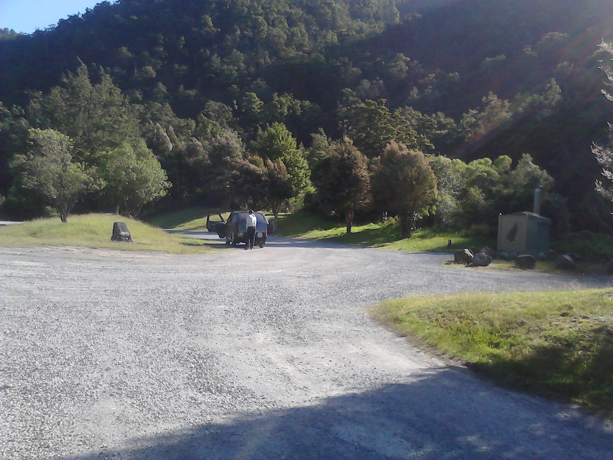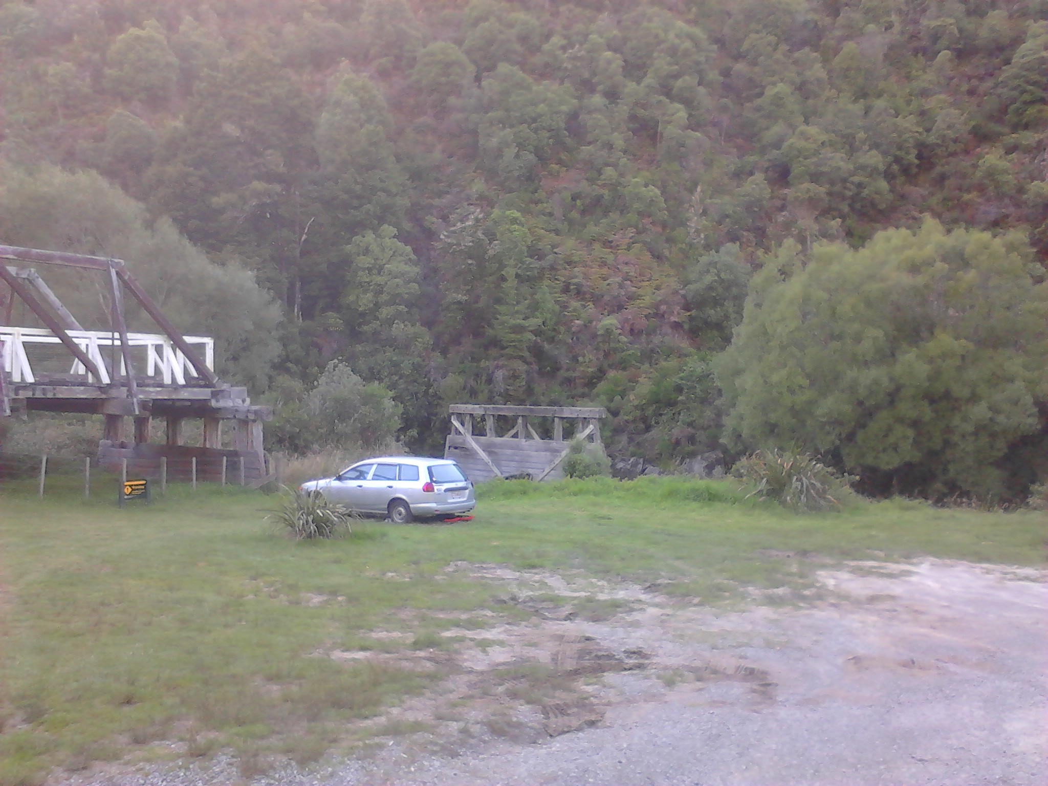 Aber genug der Erdkundestunde, ihr wollt ja wissen, wie wir die Westküste so heruntergekommen sind. Ausgehend von Nelson machten wir uns südwestwärts auf. Das erste Tagesziel war ein kostenloser DOC Campingplatz, der an einer alten verlassenen Bahnstation war. Dies sah zwar ziemlich cool aus – wir konnten es aber nicht wirklich genießen, weil ungelogen hunderte, wenn nicht tausende Sandflies diesen Platz bevölkerten. Trotz einigermaßen gutem Wetter verschanzten wir uns daher in Gary. Doch auch hier waren wir kaum sicher, denn – alt wie unser kleiner Van ist – Gary hat leider einige kleine Öffnungen, durch die diese verflucht kleinen Biester immer wieder geschlüpft kamen. So sah der Abend für uns in etwa so aus: 5 Minuten lesen, 10 Minuten Sandflies erledigen. Erst als die Sonne unterging und es wirklich langsam dunkel und kalt wurde ließen die Biester von uns ab.