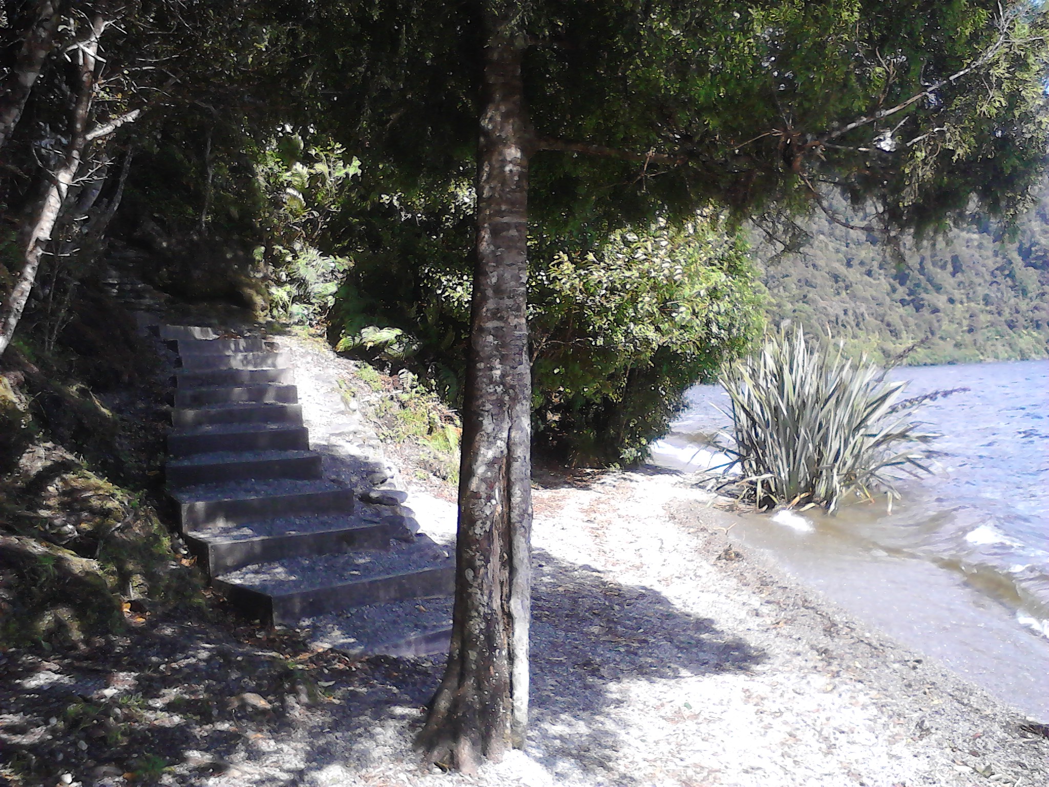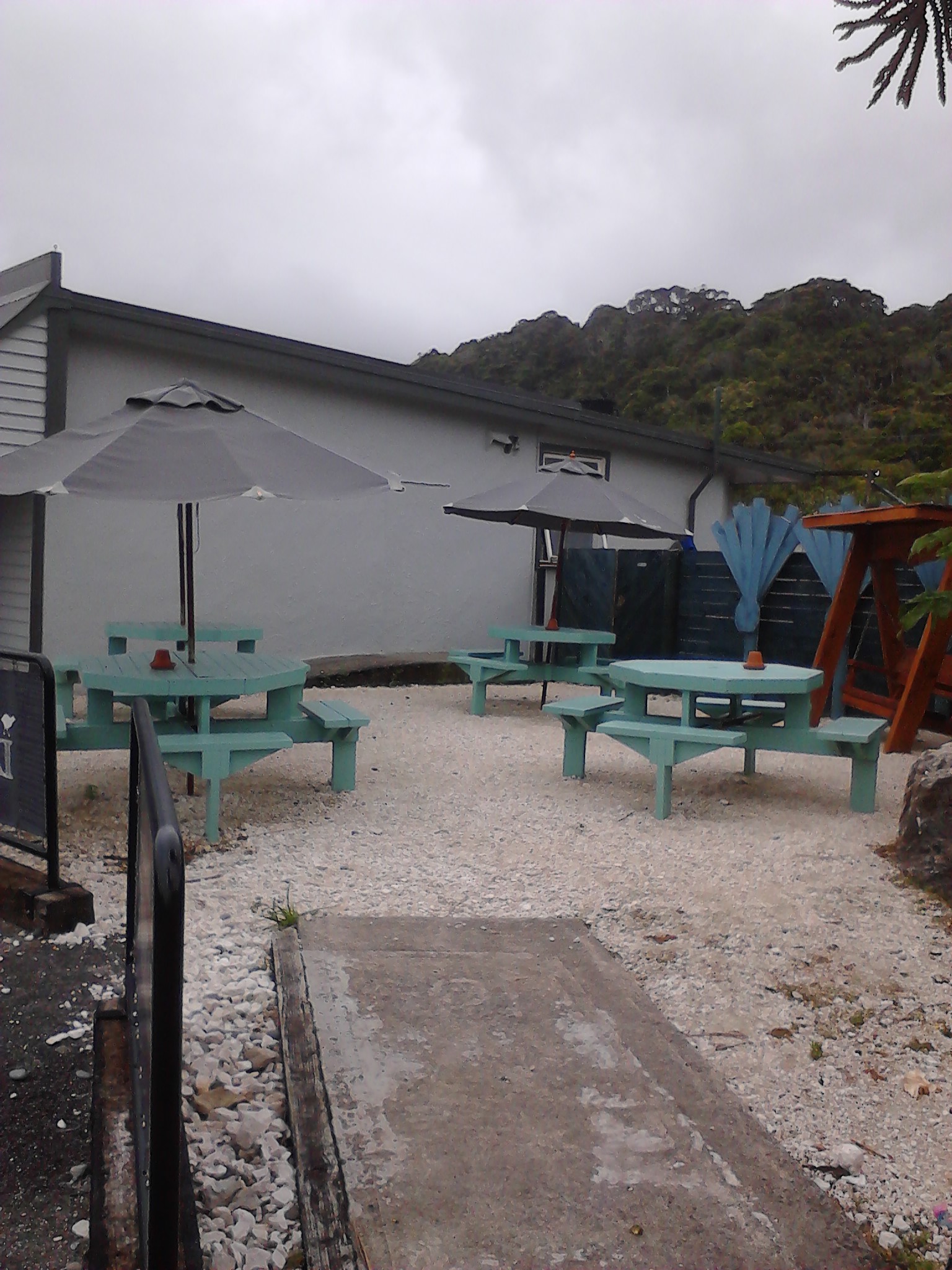 Erst ganz leicht, dann wurde der Regen wirklich richtig heftig. So wie wir es über die Westküste gehört haben. Dazu wehte ein heftiger böhiger Wind aus Westen kommend. Unseren Lunchbreak machten wir daher in Gary. “Dank” des Windes konnte Heiko das Essen sogar fast trockenen Fußes aus dem Kofferraum holen. Der Wind blies so heftig, dass direkt neben und hinter Gary fast kein Regen hin kam.Nach vorne hingegen sah man keine hundert Meter weit. Wir fuhren dann im vorsichtigen Schneckentempo bis zum Doc Campingplatz am Lake Mapourika. Hier räumten wir unsere Rucksäcke und Co. um, ohne das Auto zu verlassen. Obwohl das eine Premiere war, ist es uns ziemlich gut gelungen. Der Campingplatz ist keine 20 Minuten vom Franz Joseph Gletscher entfernt, und was wir dort erlebten, könnt ihr im nächsten Blogpost lesen …