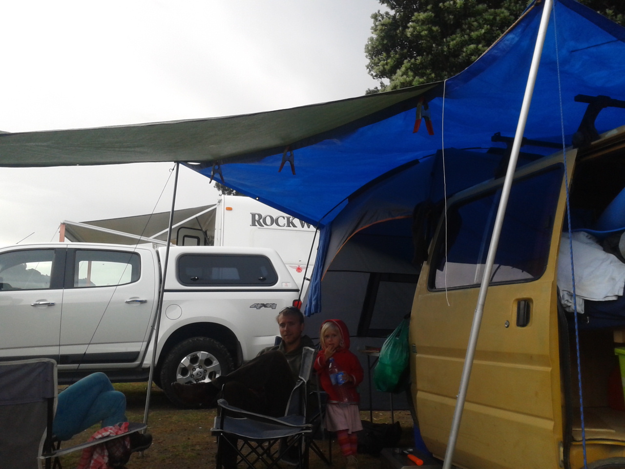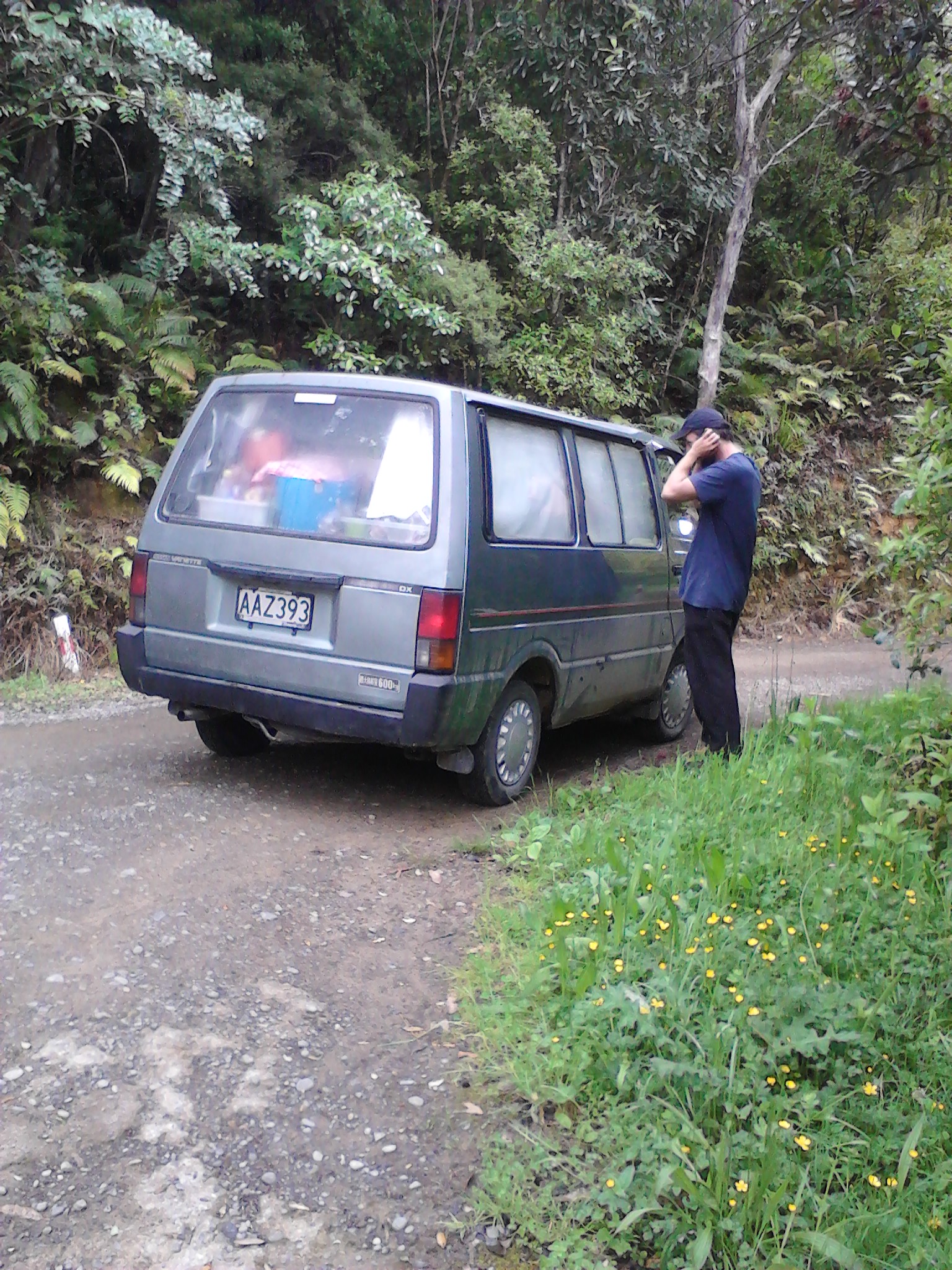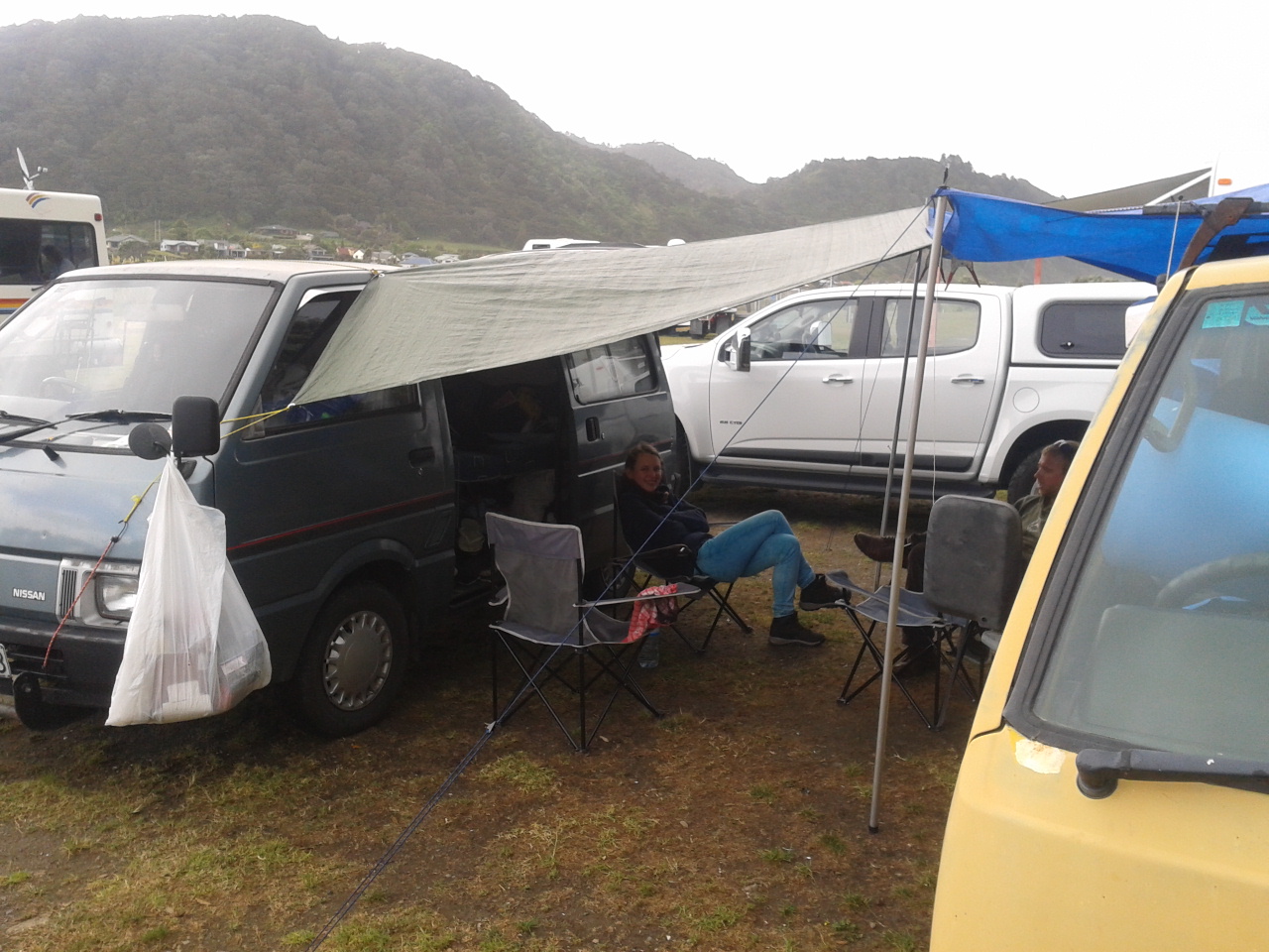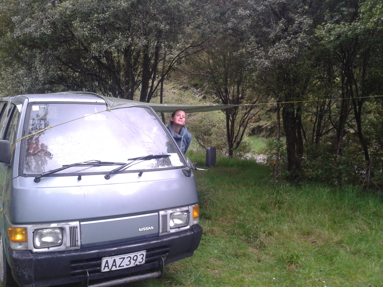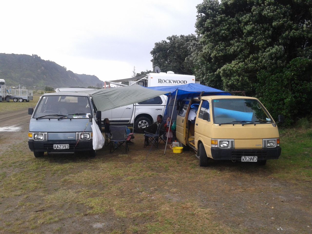 Wir sind an jenem Tag von einem DOC Campingplatz aufgebrochen, wo wir zwei nette deutsche Backpacker und ihre etwas laute kleine Tochter kennenlernten und mit ihnen zusammen ein kleines Camp bildeten. Sie hatten auch einen alten Nissan Vanette als Campervan und somit einen kleinen Bruder von Gary 🙂