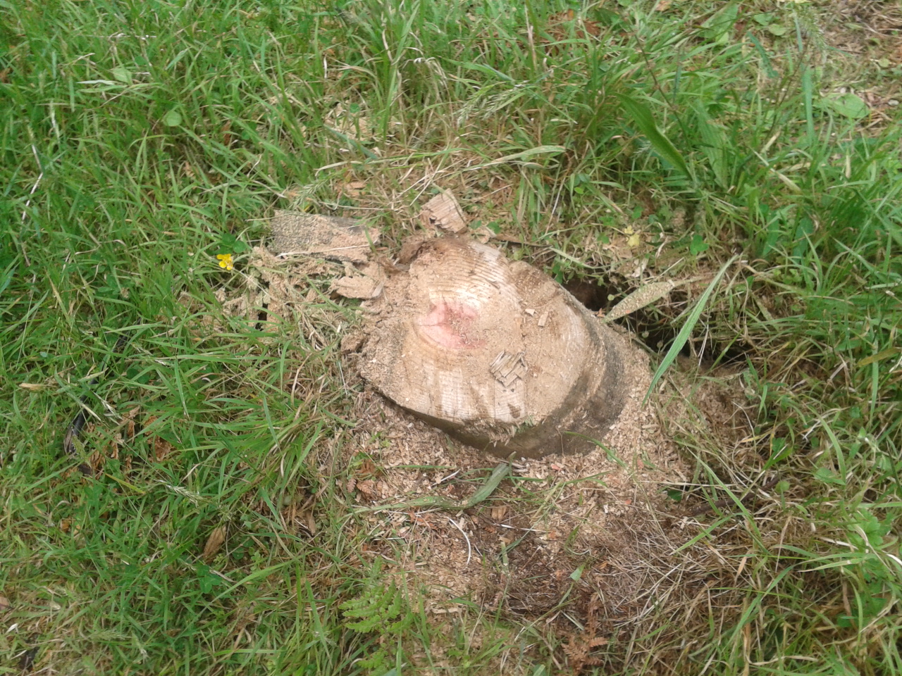 Die Zufahrt zu der Wiese war ursprünglich durch eine Art Zaun verstellt. Von diesem wurden wohl irgendwann die Latten entfernt, nicht jedoch die ca 30 cm hohen und gut 15 cm dicken Holzpflöcke. Genau in der Mitte unserer “Fahrbahn” war ein solcher Holzklotz und wir räuberten mit Gary genau darüber! Zwischen dem Motor und den hinteren Elementen steckte nun dieser Holzklotz und war unverrückbar in der Erde eingegraben. Eine erste Inspektion beruhigte uns wenigsten insofern, dass Motor, Getriebe und alles noch zu funktionieren schienen, nur steckten wir fest.