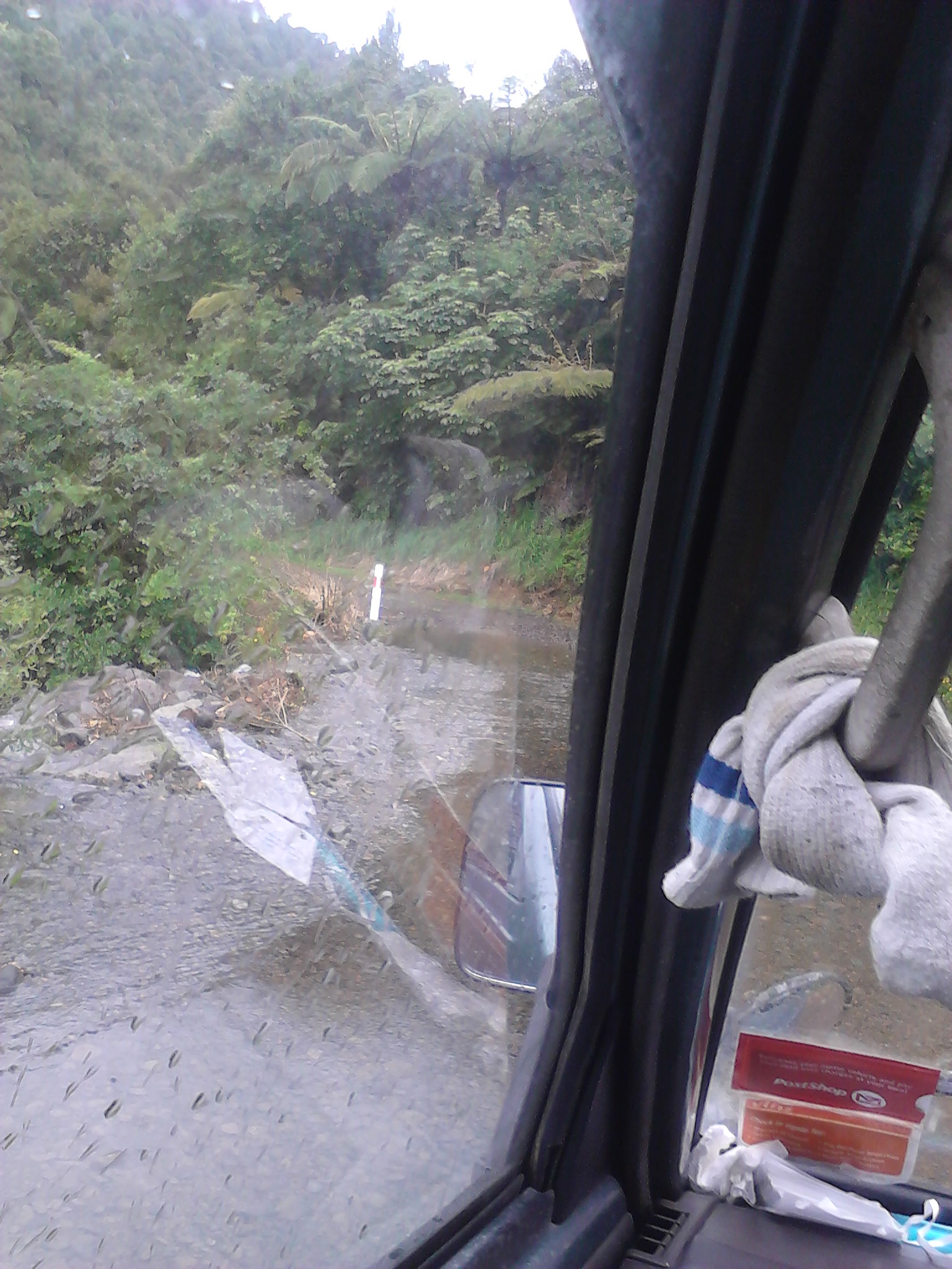 Der Schock saß tatsächlich noch einigermaßen tief, so dass Johns “Gebühr” für die Hilfe uns ein Lächeln abrang. Wir sollten seinen Campingplatz Bushaven bitte bei Facebook liken und bei Tripadvisor bewerten, dann wäre alles cool. Kiwis halt … 🙂 Das Versprechen haben wir mittlerweile auch schon eingelöst. Gary stellten wir dann unter einem anderen Baum unter und richteten uns dann für die Nacht ein. Der Campingplatz selbst war nämlich richtig schön und total abgelegen. Am nächsten morgen schien uns dann die Sonne entgegen und wir machten uns wieder auf. Ohne Probleme den steilen Weg hoch, ohne Probleme durch die Furt und weiter mit dem Ziel den östlichsten Punkt Neuseelands zu erreichen …