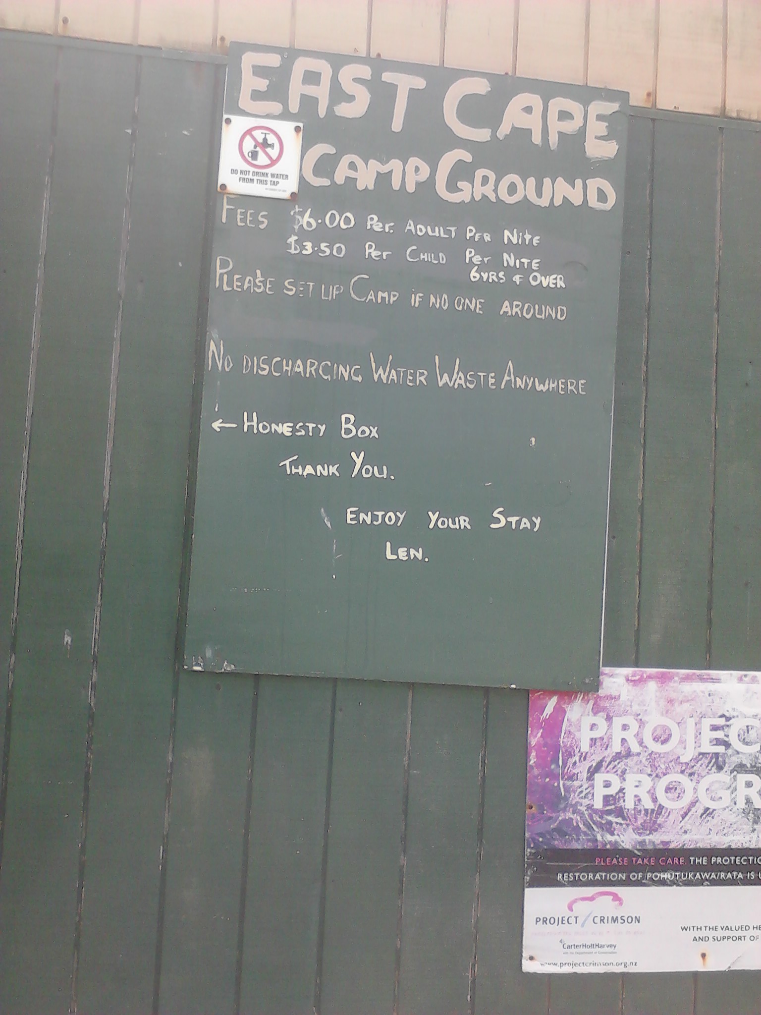 Nach unserem kleinen Schock mit Gary könnte man ja meinen, wir würden erstmal auf Nummer Sicher gehen und uns auf “vernünftigen” Campinplätzen einmieten. Aber weit gefehlt, denn der nächste Platz versprach nicht nur der nächste zum Eastcape zu sein, sondern auch noch sehr günstig mit 6 NZD pro Person und Nacht. Es stellte sich dann heraus, dass der Begriff “Eastcape Camping Ground” mehr als übertrieben war. Denn was wir vorfanden war folgendes: