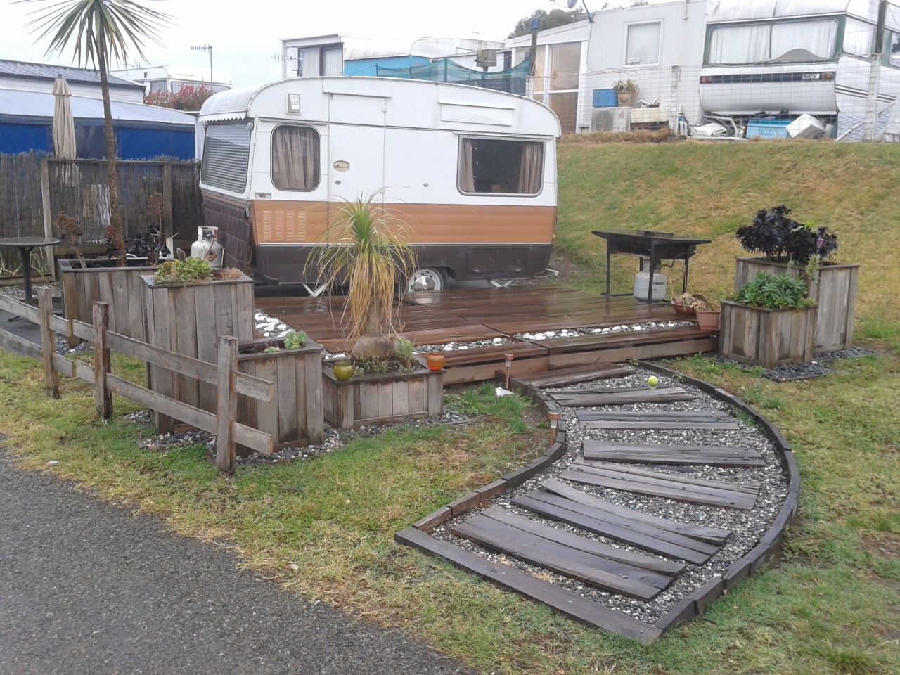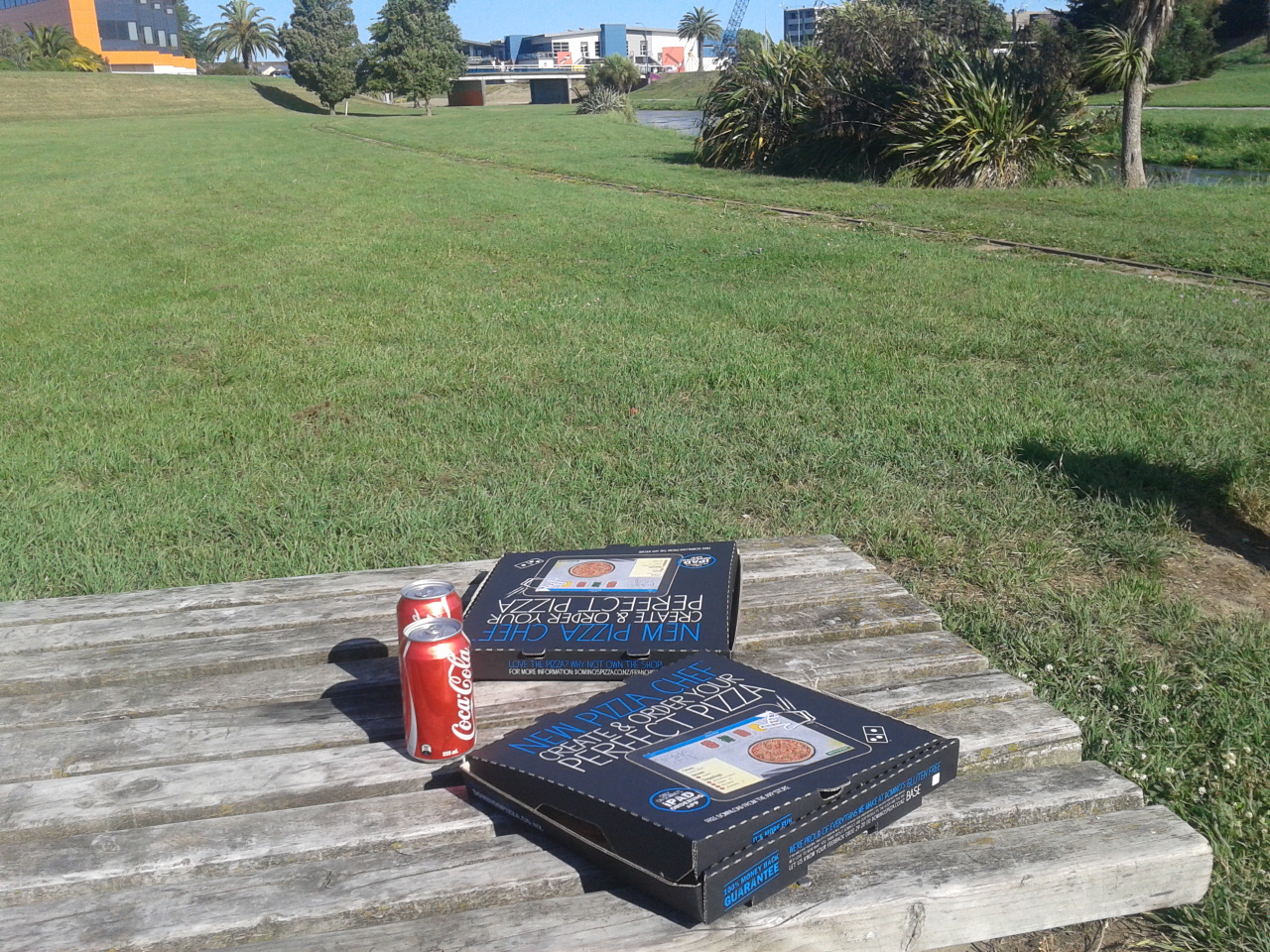Jedenfalls ging es dann los. Naja noch nicht ganz. Mit Benni und Ellen verabredeten wir uns nämlich noch bei Dominos Pizza. Dort gibt es nämlich jeden Dienstag die kleinen Pizzen für nur 4 NZD! Also nahmen wir dort noch Pizza mit, die wir auf einem Rastplatz, der nicht weit weg war genüsslich mit den beiden verschlangen. Dann ging es aber wirklich los, Benni und Ellen sollten wir Abends wieder treffen, sie hatten den gleichen Campingplatz gebucht, wie wir. Und was war das für ein Campingplatz. Ungefähr der riesigste Campingplatz, den wir in Neuseeland bisher gesehen haben. Allein auf der Übersichtskarte konnte man schon hunderte Campsites zählen, Cabins, Motelräume und ähnliches garnicht mitgezählt.