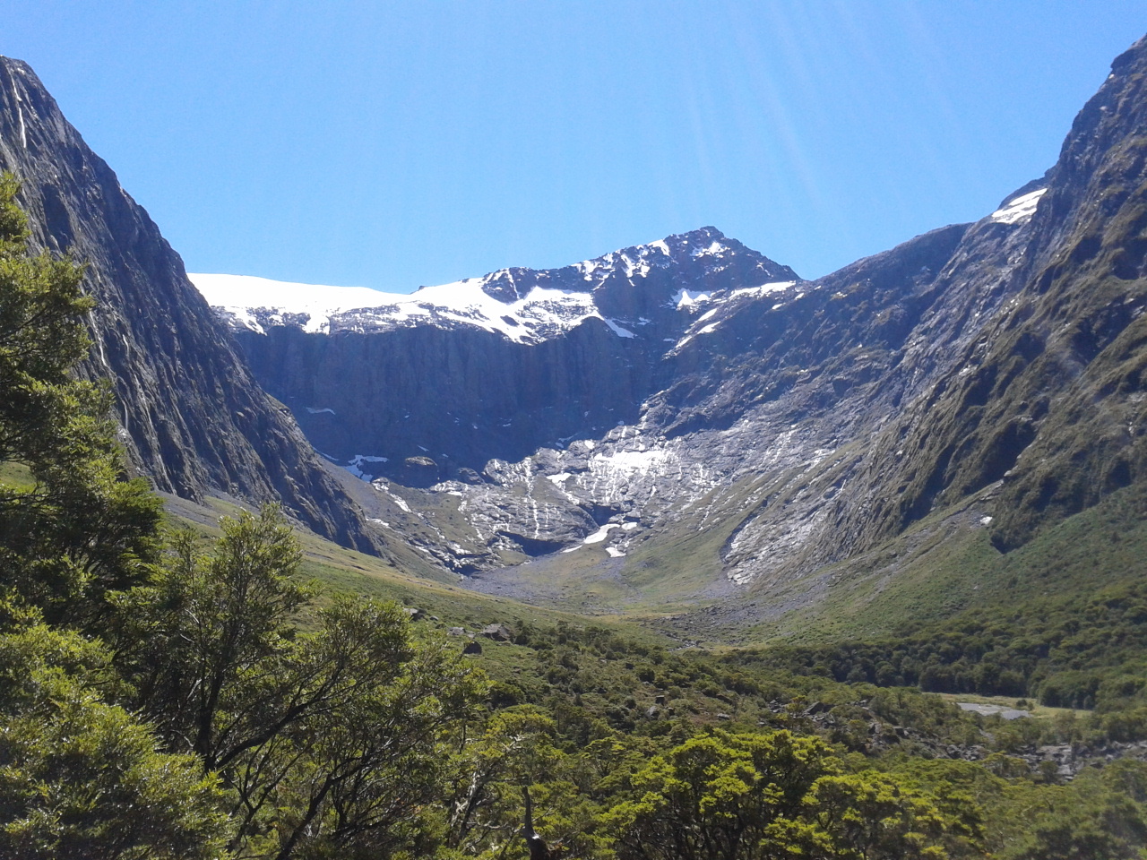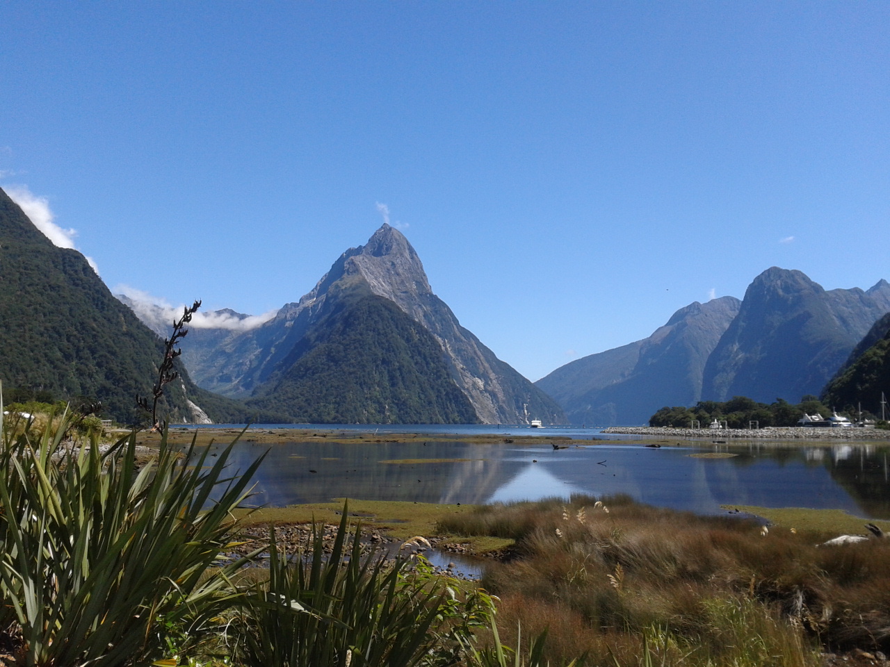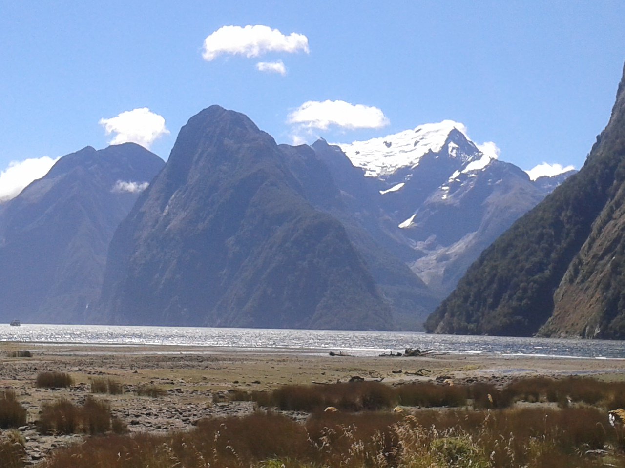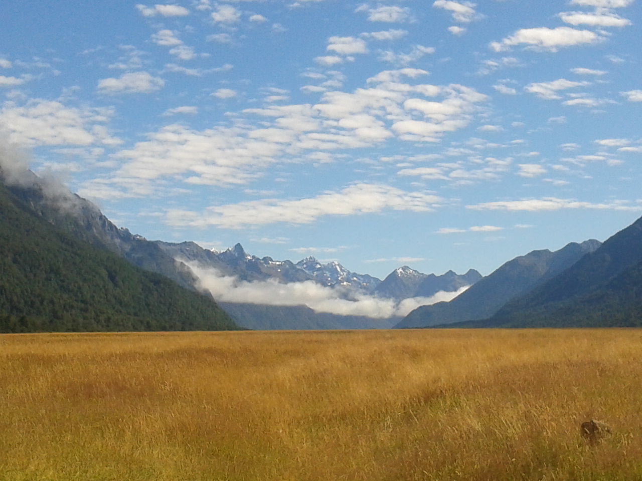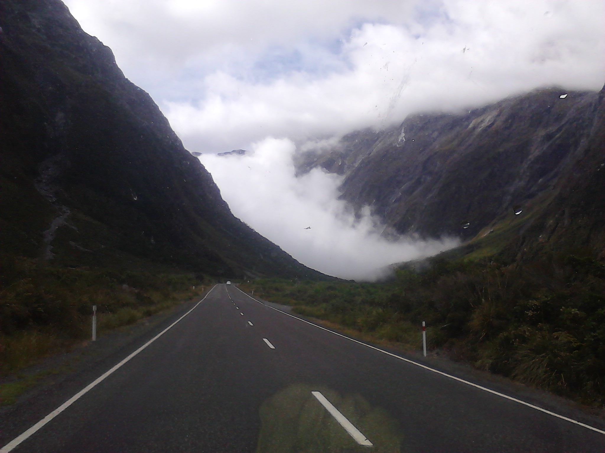 Nachdem wir also eine sternenklare (und dementsprechend kalte) Nacht hinter uns gebracht hatten und ohne Frühstück von unserem sandfly-verseuchten Campingplatz geflüchtet waren ging es weiter richtung Milford Sound. Kleiner Fun Fact am Rande der Milford Sound ist gar kein Sund, sondern ein waschechter, gletschergeformter Fjord. Das war den Leuten bei der Benennung aber herzlich egal und so heißt er immernoch Sund.
