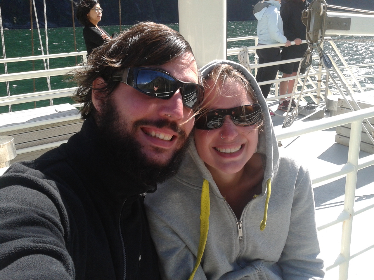 Dank der ganzen Weihnachtsgeschenke konnten wir uns ja ein paar Extravaganzen leisten, die wir uns sonst verkniffen hätten und so haben wir auf dem Milford Sound nicht nur eine kleine Tour von 1,5-3 Stunden gemacht sondern einen overnight cruise und das war sooooooo toll! Danke nochmal an unsere lieben Familien für so ein tolles Weihnachtsgeschenk! Am Dienstag Nachmittag ging es also auf die Milford Wanderer. Wir hatten eine Unterkunft im 4er Dorm gebucht, aber sie waren nicht voll ausgelastet und haben uns kostenlos auf eine Einzelkabine geupgradet! Ging richtig toll los und es wurde immer besser. Das Schiff kann 36 Leute beherbergen und es waren 26 an Bord.