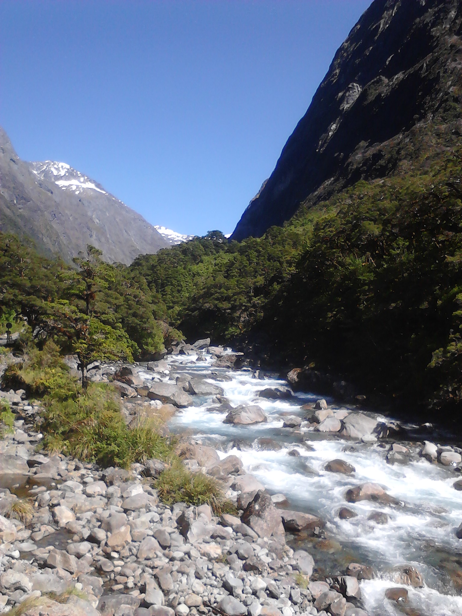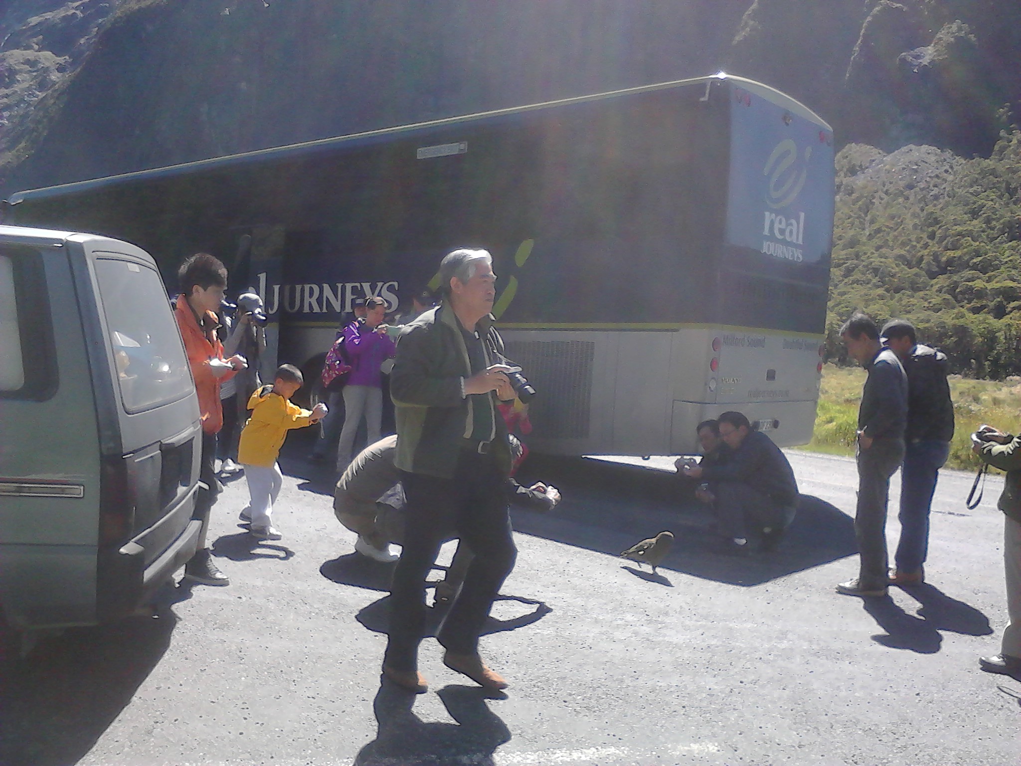 Die Straße zum Milford Sound ist 120 km lang und alle paar Kilometer gibt es einen DOC, so dass man wirklich die große Auswahl hat wo man von Sansflies aufgefuttert werden möchte. Die lästigen kleinen Viecher sind so groß wie Obstfliegen und beißen richtig gemein, so dass man noch tagelang was davon hat. Und hier im Fjordland gibt es sie wie Sand am Meer. Der Maori Legende nach schuf die Göttin der Unterwelt diese kleinen Biester, weil sie Angst hatte die Menschen würden im wunderschönen Fjordland zu lange verweilen und brauchten eine Erinnerung an ihre Sterblichkeit, Nicht sehr nett, wie wir finden ^^